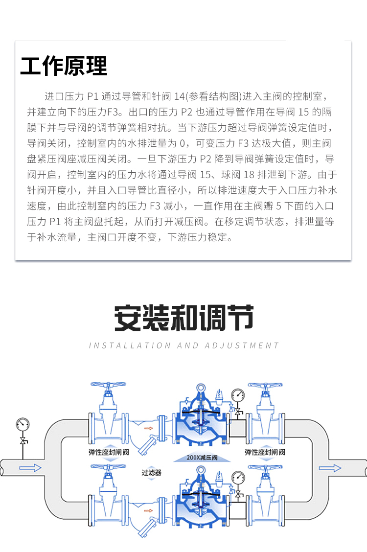 應用領域:不銹鋼可調式減壓閥自來水200X-16P 先導式法蘭消防水力控制閥門
